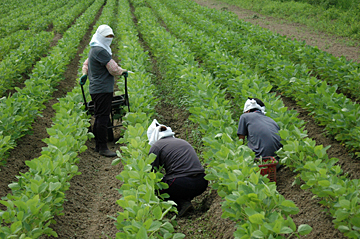 無農薬・・・JAS有機の大豆。 やっぱり雑草との戦いですね。 先日、家族総出でやっと1回目が完了しました。 ヘトヘトになりました。 でもホットしました。
