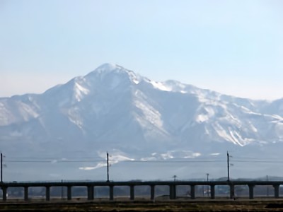 高田平野と刈羽平野の間にそびえ、秀麗な山容を見せています。