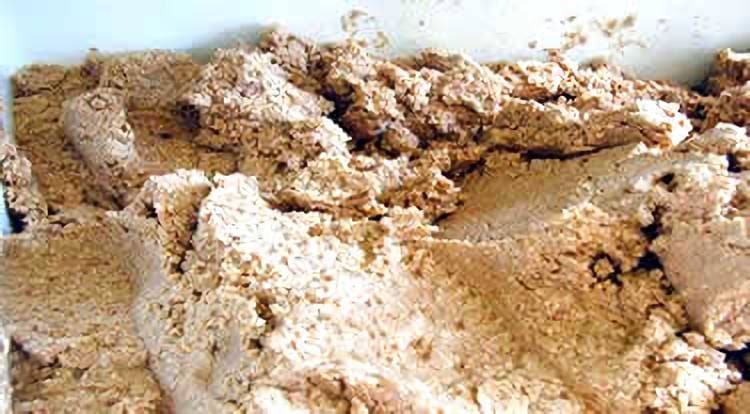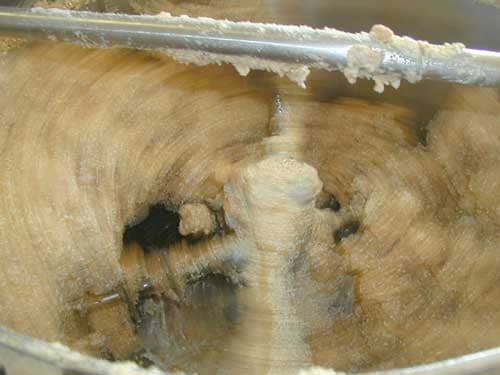 蒸煮大豆・麹・食塩・種水を混合機にいれ20~40秒、攪拌。仕込みは仕込みタンクへ - (切り返し)