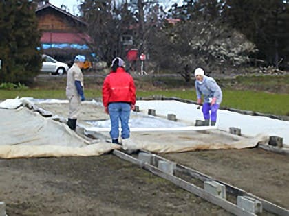 洪水のため溝たてをやり直し。