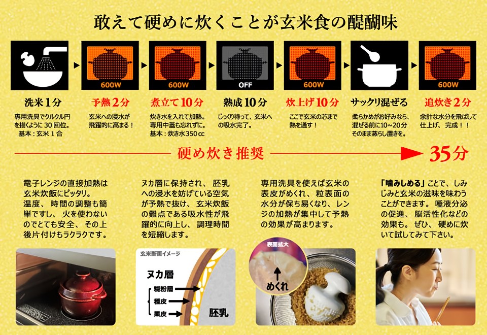 - 白米に混ぜたり、白米を美味しく食べて、一日一食だけでも玄米を楽しんでください。