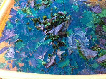色鮮やかな素晴らしいしそです。「しそ餅」は梅干しそで作ります。あいにくの雨模様でも頑張ってます!