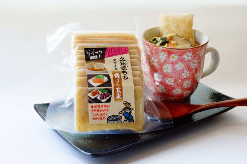 玄米餅を薄くスライスしました。焼くととても香ばしく、じっくりと玄米の甘みを感じます。